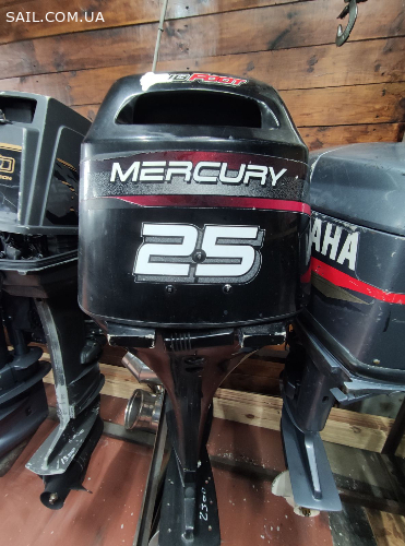 Човновий мотор б/в Mercury F25 L, потужністю 25 к. с.2005 р.в., карбюратор, дейдвуд 508мм ( L / довга нога), дистанційне керування, трим, 4-тактний.